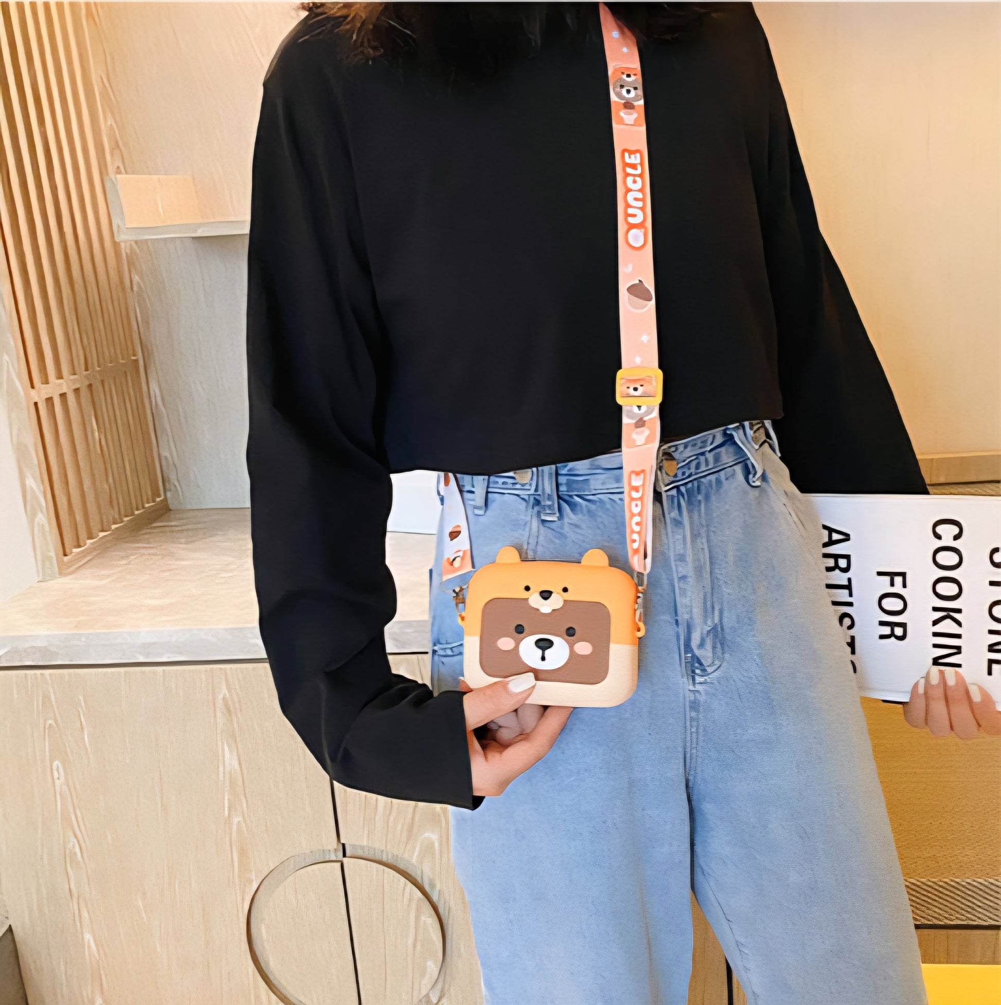 Elevate your fashion game with our Kawaii Bear Silicone Sling Bag! This small-sized sling bag is not only cute with its bear design, but also functional with a strap for easy carrying. Made of durable silicone, it comes with a bag charm/keychain, mirror, and comb for added convenience. Bring out your inner fashionista with this must-have accessory.