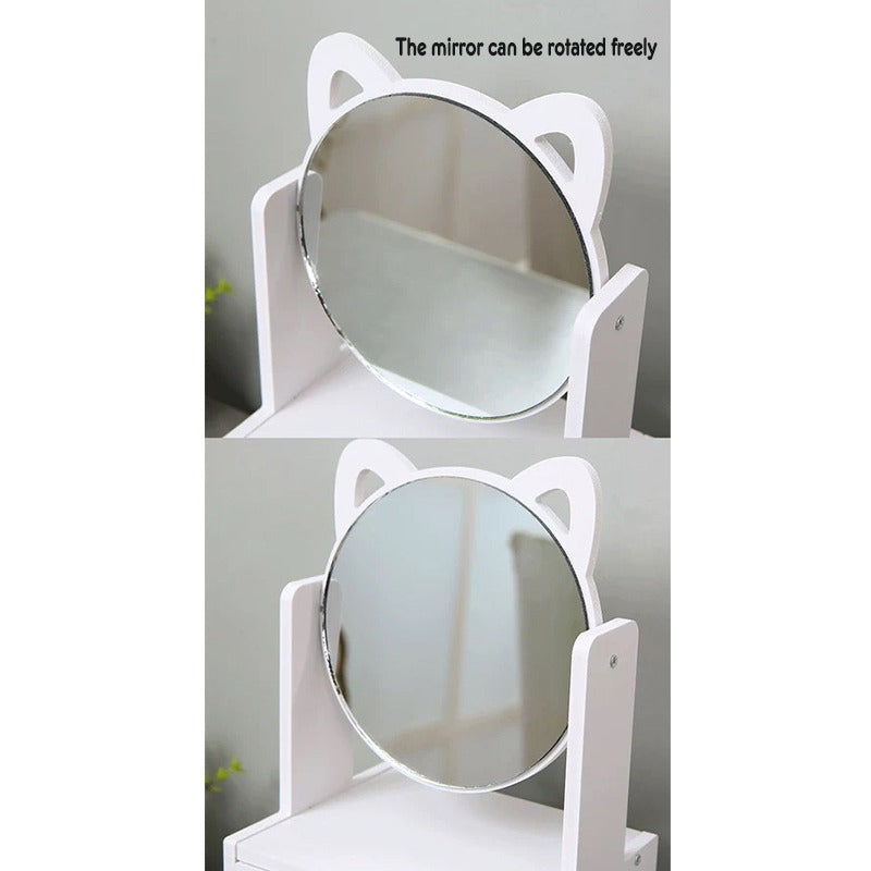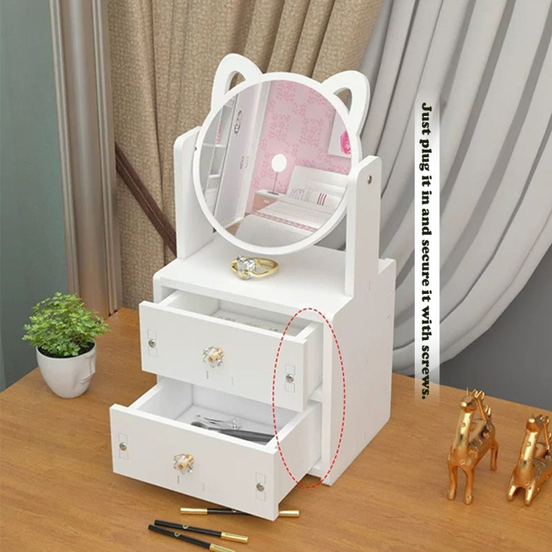 Meet the Neko Dresser Drawer—a charming cat-shaped mirror paired with functional storage that transforms your desk into an adorable sanctuary. This DIY assembly piece features two spacious drawers perfect for organizing makeup, jewellery, and accessories while keeping everything within arm's reach. The sleek aesthetic design serves as both practical storage and decorative accent, and its smooth surface welcomes personalization with stickers or washi tape for a truly customized look. Ideal for anyone seeking cute desk organization that doesn't compromise on utility.